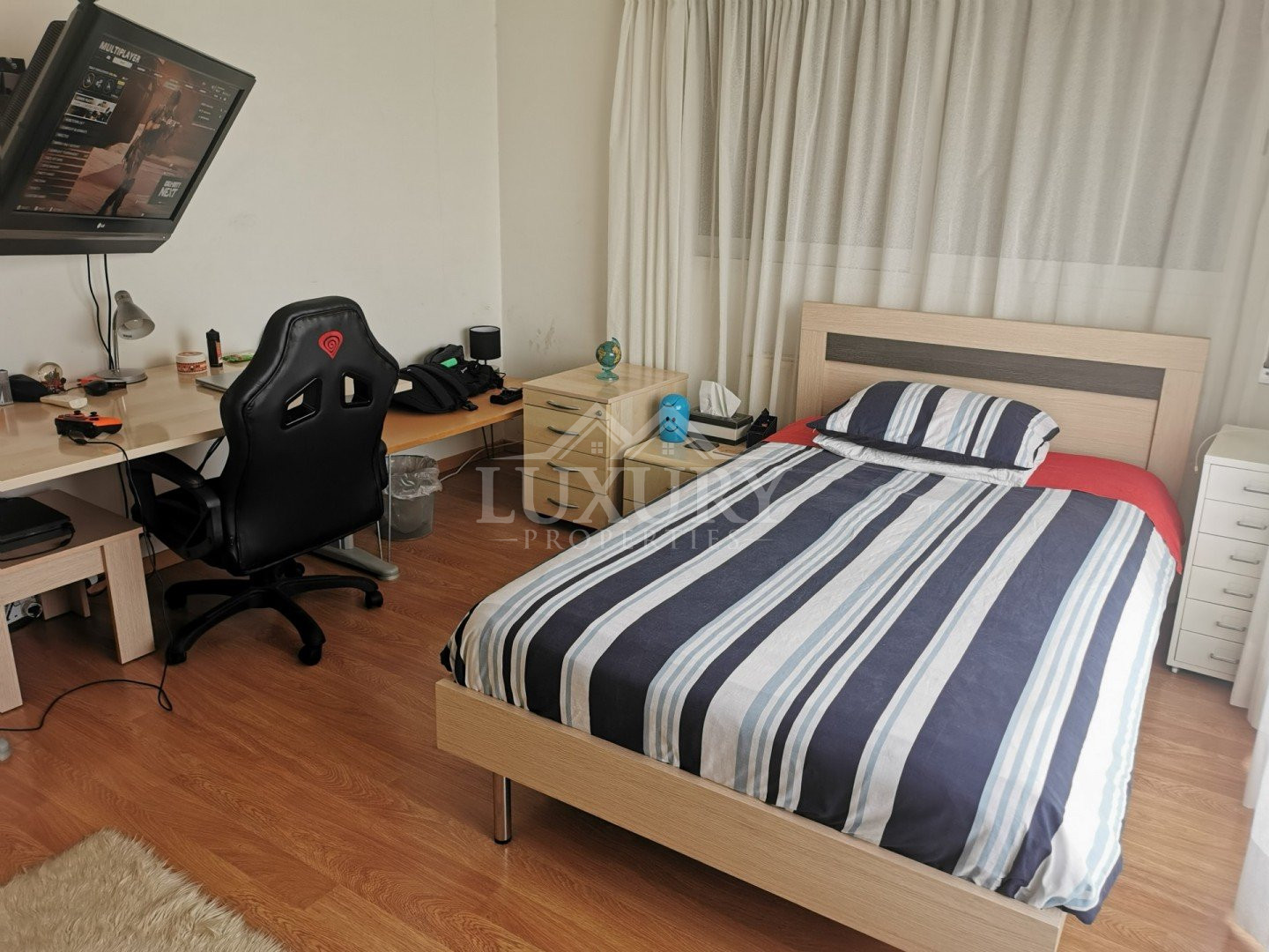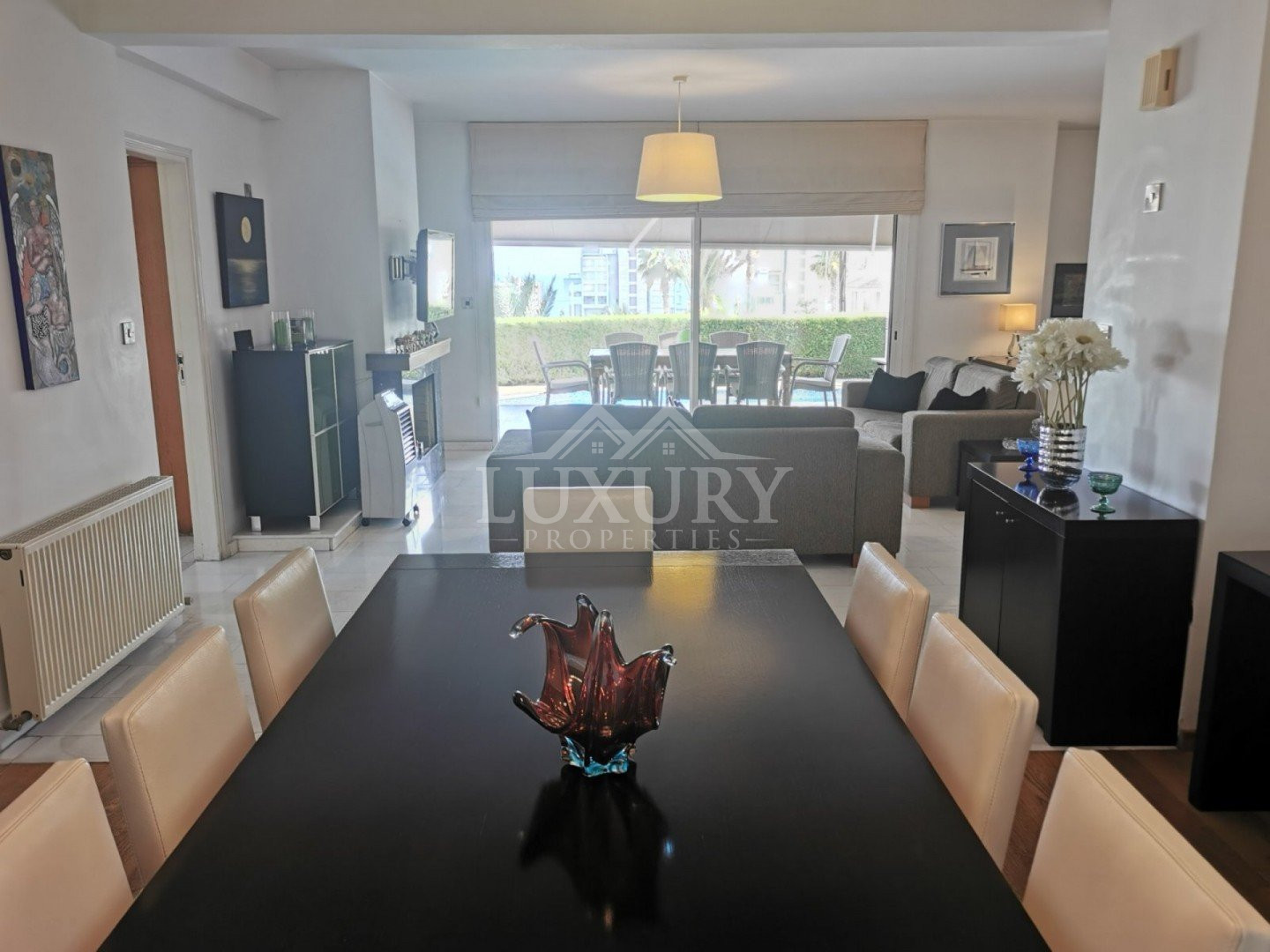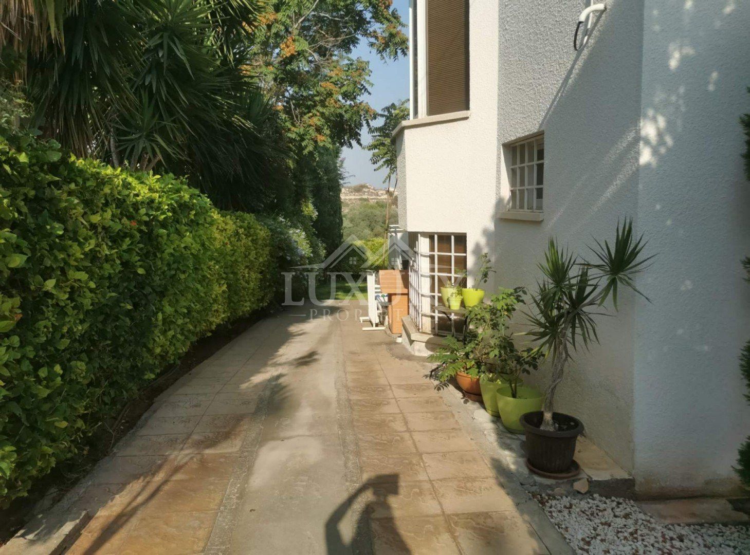 Lovely five bedroom villa in Agios Tychonas with swimming pool and sea view is available now.It has internal covered area 431 square meters and plot size 954 square meters. There is separate kitchen with two living rooms , one sitting room, two dining rooms and a guest w/c. Also there is a fire place, store room and one utility room.There are four bedrooms and one of them has en-suite bathroom, all with fitted wardrobes and a family bathroom on the first floor. Outside of the building there is a nice big garden with trees and flowers, with automatic watering system , large covered parking space for three cars with electric gate and barbecue.There is a maids-room , playing room and kitchenette. The aluminium doors and windows are double glazed with security locks. It has solar water heater with pressure. Also it has security system , alarm system, a/c in all areas diesel central heating and water drilling .The house is located on a hill of Agios Tychonas with view of Limassol and is only five minutes drive from the sea and ten minutes drive from Limassol City.Located in a quiet ,nice area surrounded by nice houses at a dead end road.It has quick access to all needed amenities including supermarkets, parks,schools, restaurants and beach.