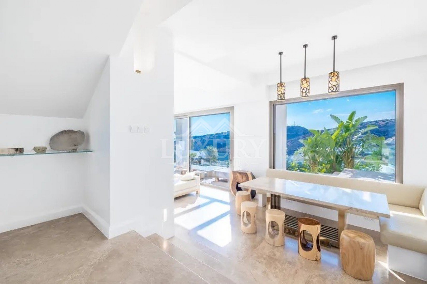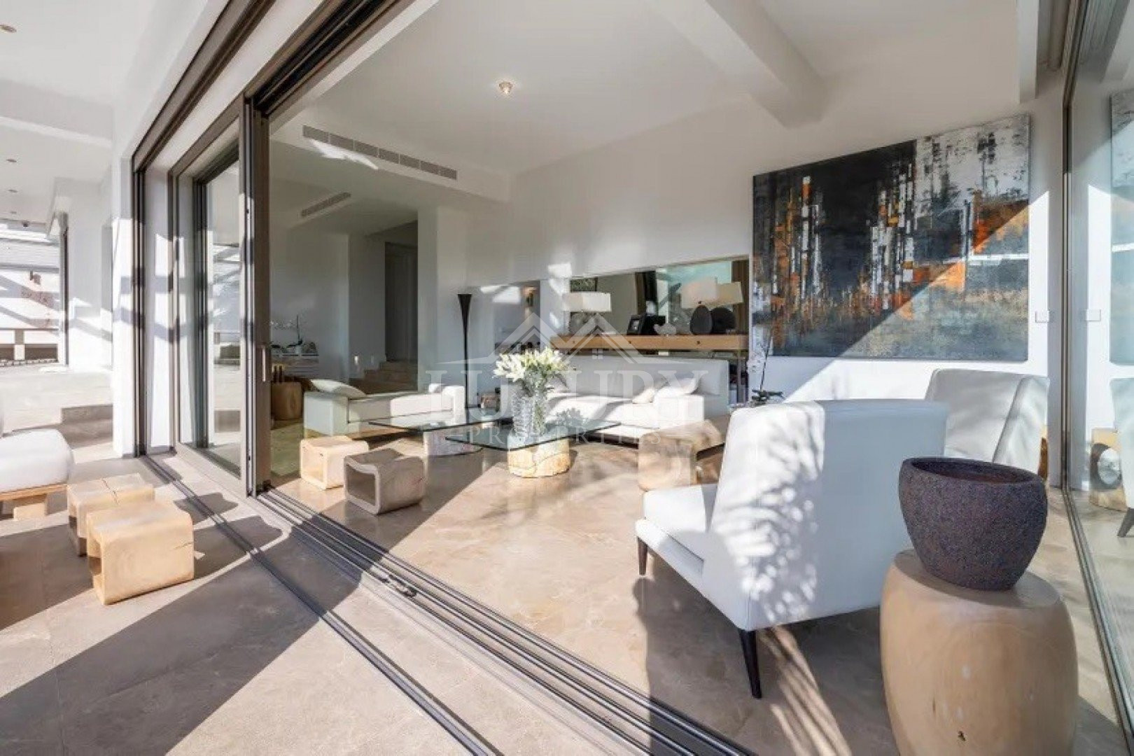 An elegant luxury resale 5-bedroom, two-storey detached Villa with mezzanine, external guest house, separate maid’s quarter, overflow swimming pool, amazing sea views of East Limassol coastline.
