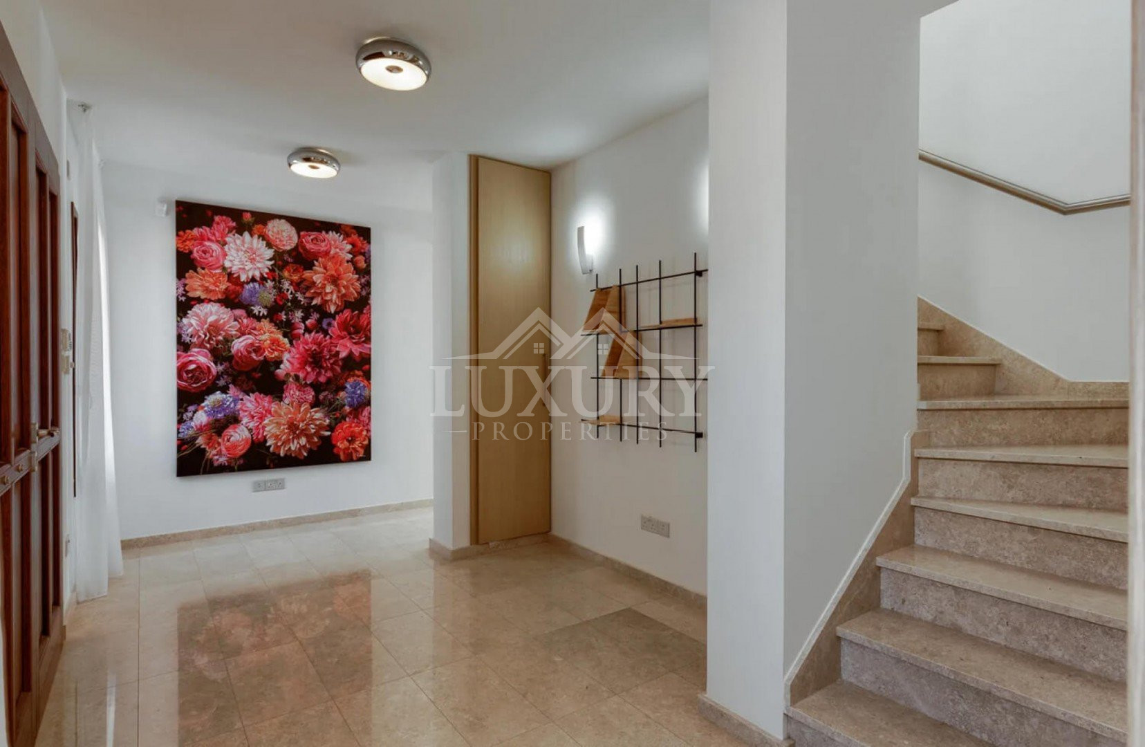 The marble staircase leads up to the first floor, with three more bedrooms and even more wide-sweeping sea views.