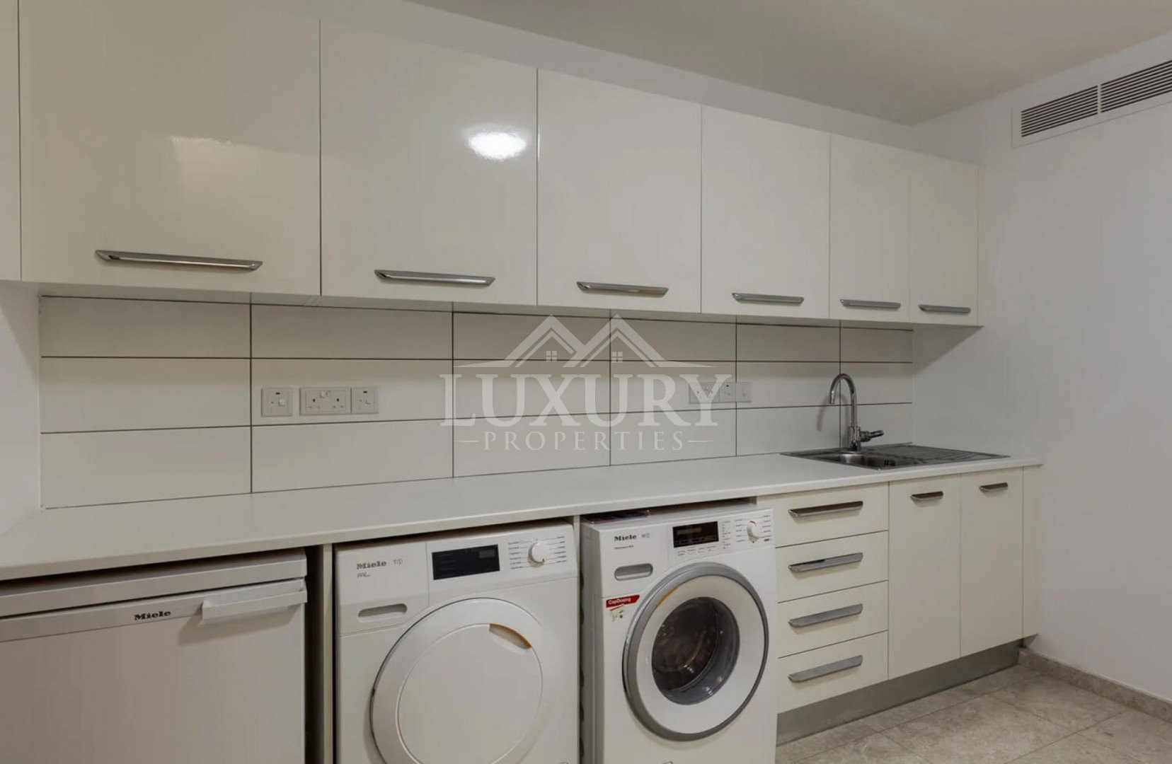 This level also offers the utility room with the washing machine, dryer, sink and a handy fridge.