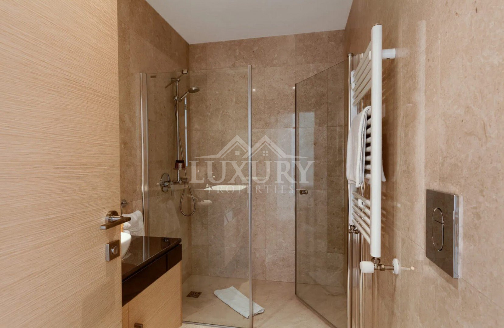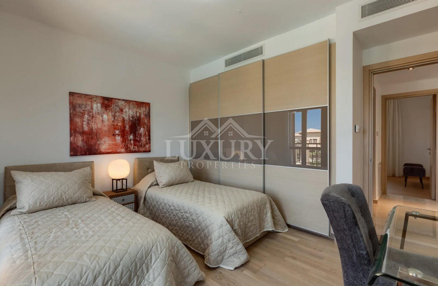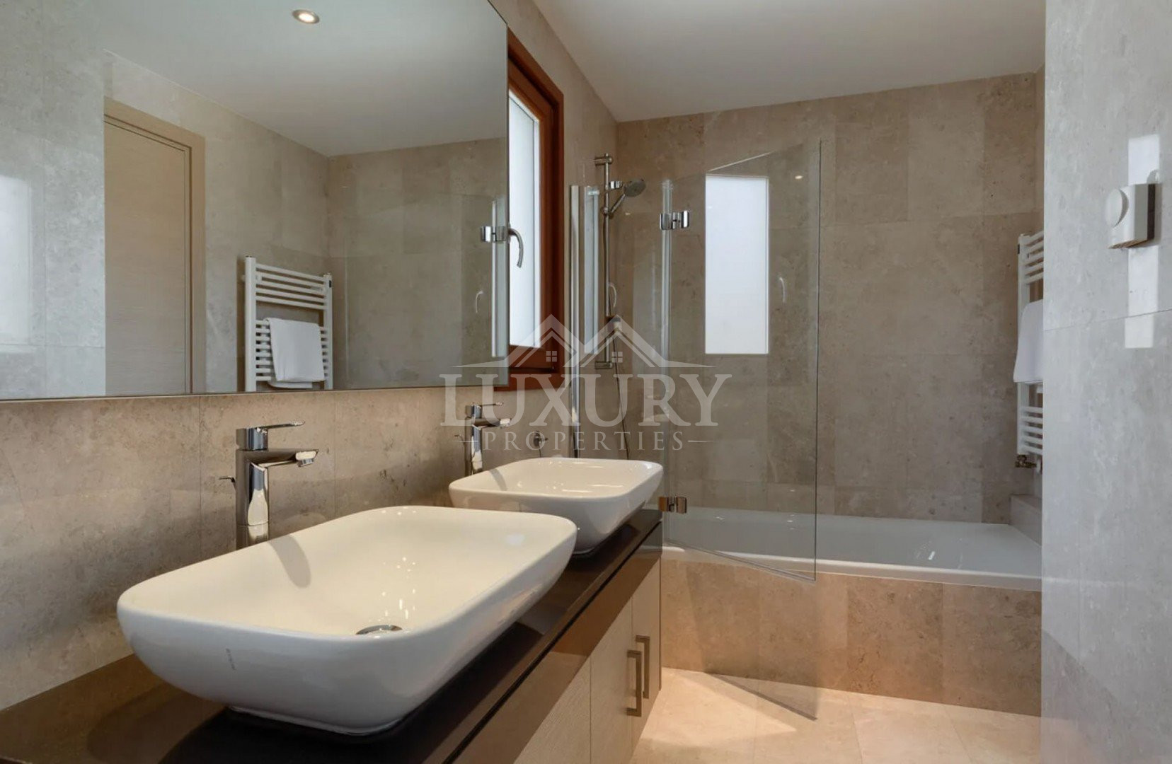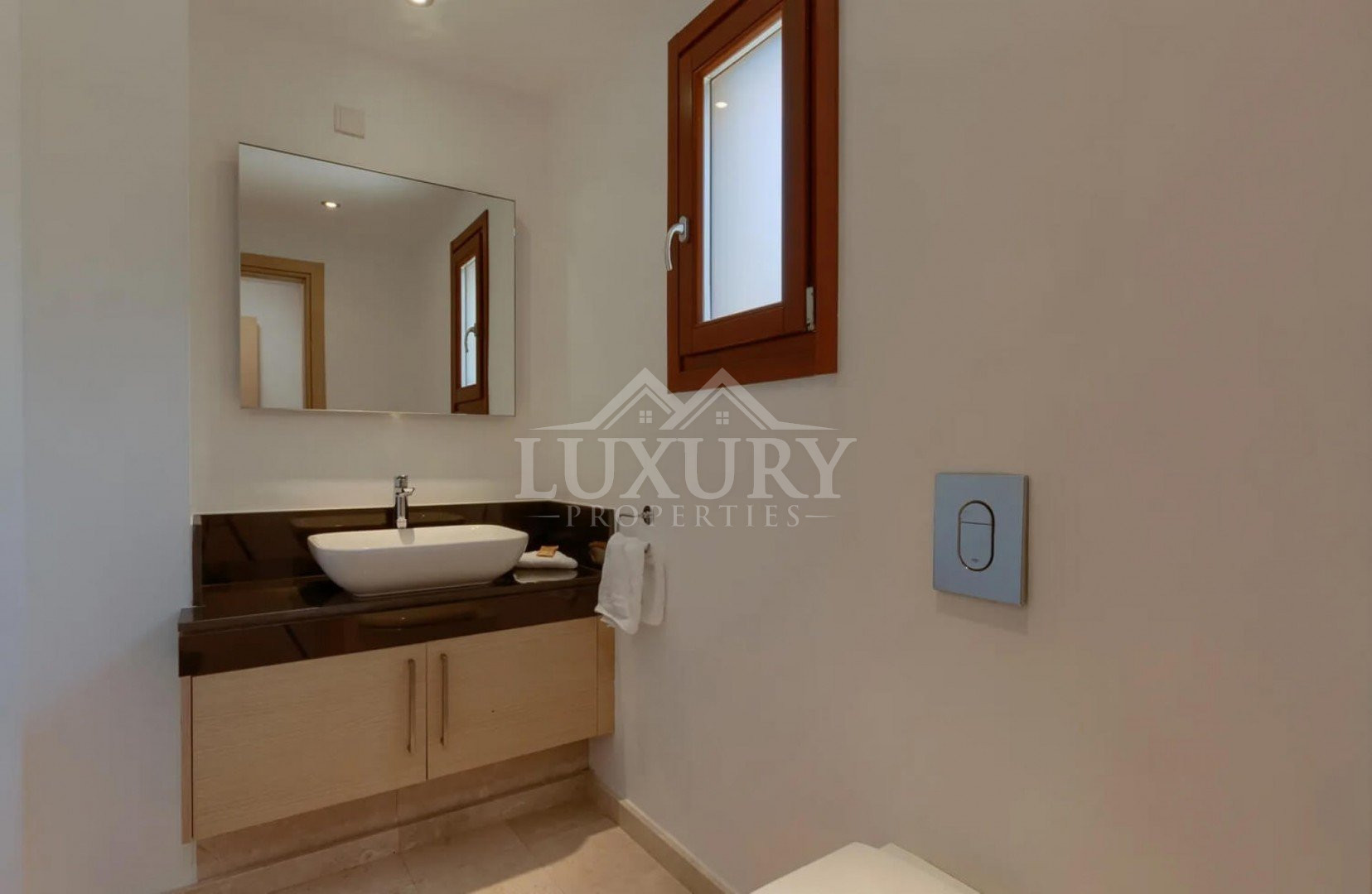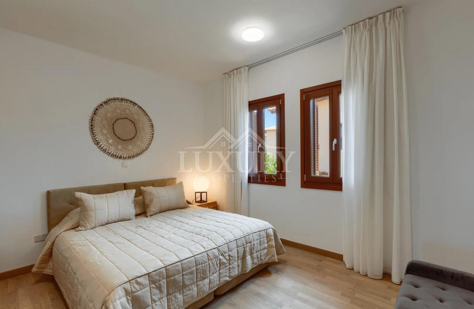 This Junior Villa offers spacious living areas and comes fully equipped with modern kitchen appliances, brand new fixtures, and a luxury finish to match. Crema Marble flooring can be seen throughout the living, dining, Italian kitchen Style design and bathroom areas with parquet flooring in the bedrooms. The Junior Villa features one double bedroom en-suite and two further bedrooms sharing a bathroom with fantastic pool and sea views.