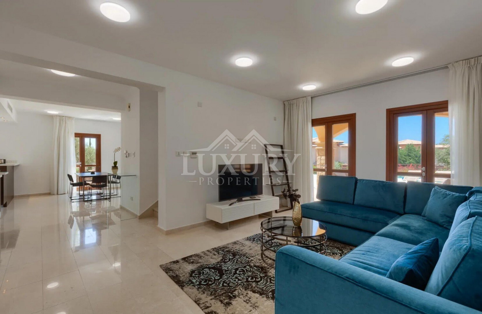 This is a beautiful 3-bedroom Junior Villa located on the Alexander Heights complex of the Aphrodite Hills Resort. This fantastic property is tastefully decorated in neutral tones with contrasting flashes of colour and has modern fixtures and fittings throughout.