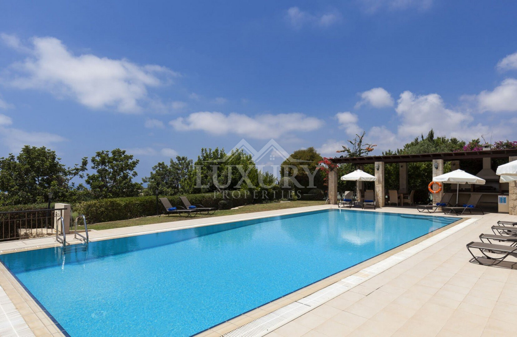 Stepping out of the living and dining rooms through the wonderful French doors, one will notice the gardens below that reflect traditional Cypriot landscaping, a very large 12m x 6m swimming pool with an overflow feature and a very spacious BBQ area to accommodate large gatherings when socializing.