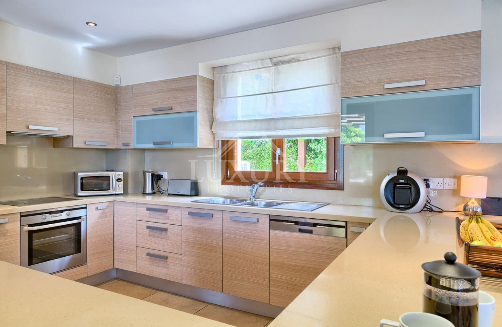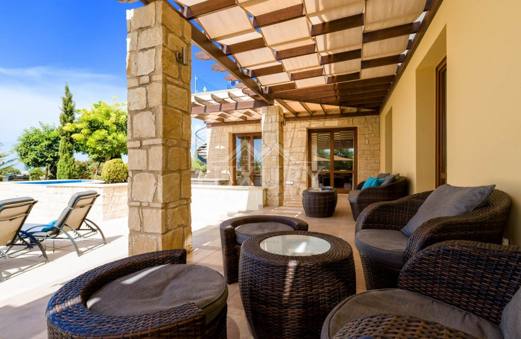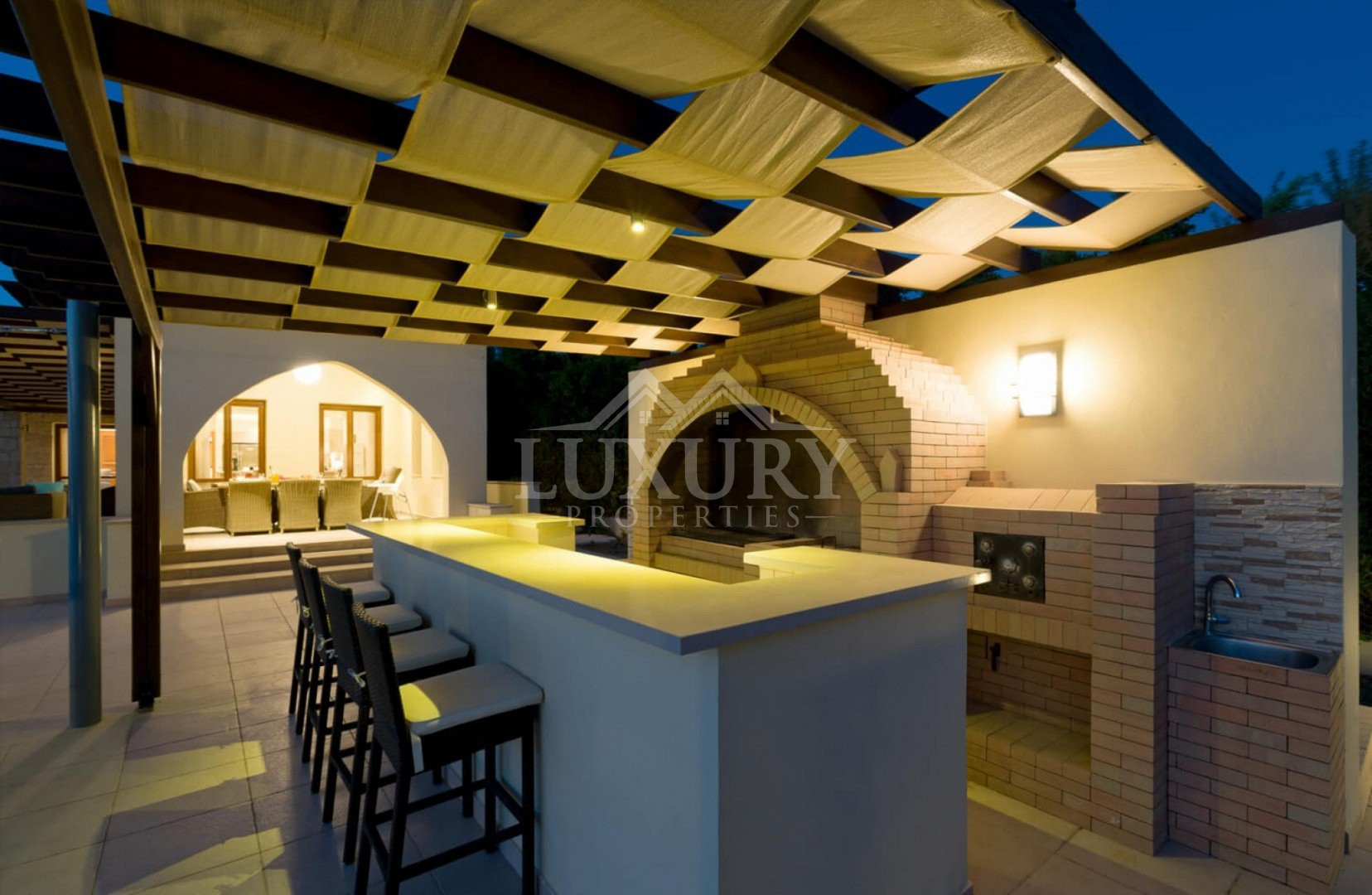 Stepping out of the living and dining rooms through the wonderful French doors, one will notice the gardens below that reflect traditional Cypriot landscaping, a very large 12m x 6m swimming pool with an overflow feature and a very spacious BBQ area to accommodate large gatherings when socializing.