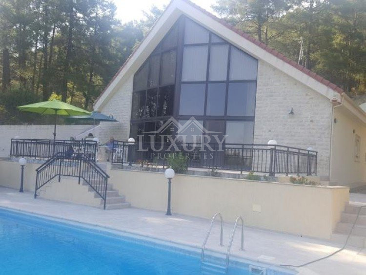 Discover a beautiful and unique luxury home nestled among the forests of Platres, ensuring complete privacy and security with its gated entrance and a private road leading to the residence. This meticulously maintained detached house spans two levels, featuring three bedrooms plus an office or extra bedroom, three bathrooms, a spacious eat-in kitchen, and generous living and dining areas. Abundant storage is provided by two expansive storage rooms. The villa boasts a large private swimming pool and ample patio/terrace space, perfect for entertaining guests. Situated on a vast 1624sqm plot with mature trees and landscaped gardens, the property offers tranquility amidst forest pine trees and stunning elevated views of the mountains. The kitchen, equipped with modern appliances, leads to an external purpose-built barbecue area and a covered wooden pergola. The property features underfloor heating, solar water heating, double glazing, a security alarm system, and a private road, all contributing to the comfort and privacy of your life. With four separate spacious bedrooms, including a master bedroom with an ensuite bathroom, this villa harmoniously blends luxury and natural beauty, providing an idyllic retreat in a serene forest setting.Set amongst the pine forest of Platres this is a beautiful Villa designed and built by the current owners. A very quiet, private and peaceful location in the heart of nature. 10 minutes drive to Troodos and 5 minutes to large supermarket, shops and amenities.