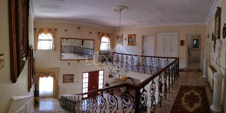 All floors and stairs are elegantly finished with top-quality polished marble. The wide staircase creates a "balcony" effect on the upstairs side of the house. The garage can accommodate at least six cars and is accessed through three automatic electrically operated doors.
