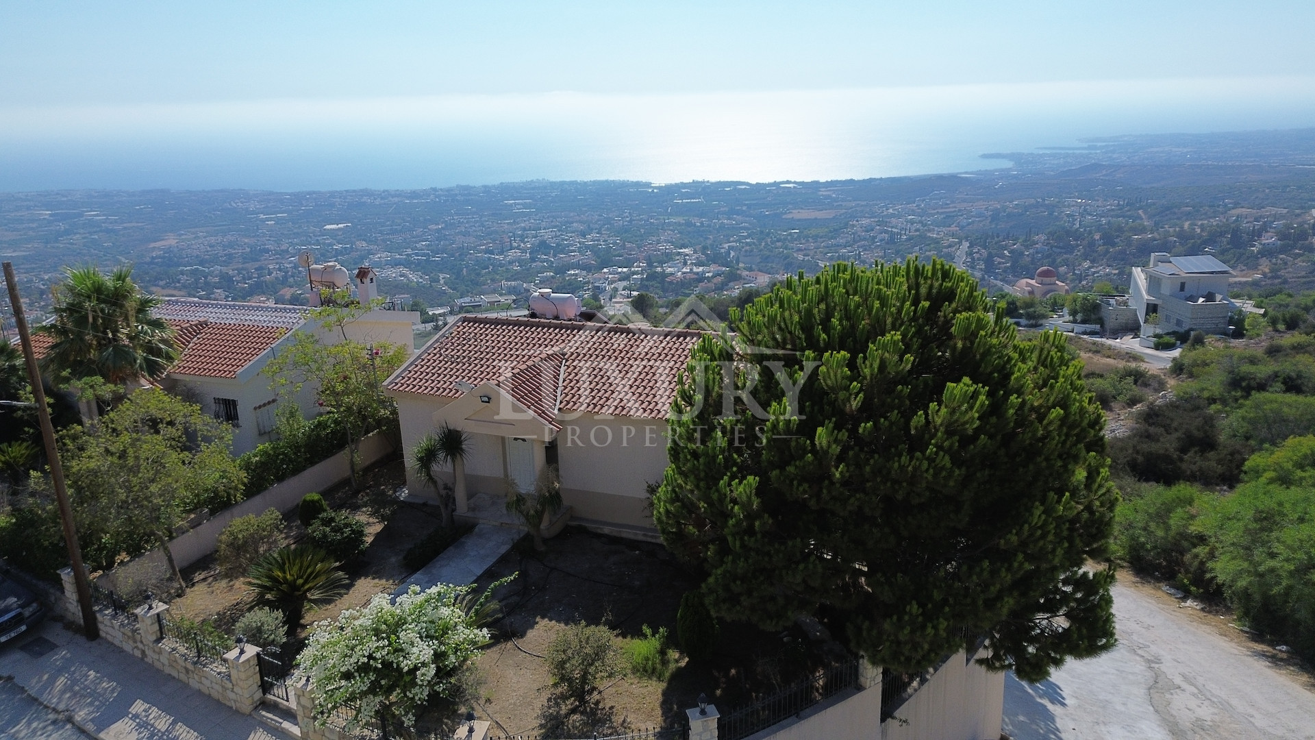 From every level of the villa, residents can enjoy uninterrupted views across Paphos town and the Mediterranean Sea. Expansive verandas, shaded terraces, and a private swimming pool are framed by mature landscaped gardens, creating the perfect setting for both relaxation and entertaining.