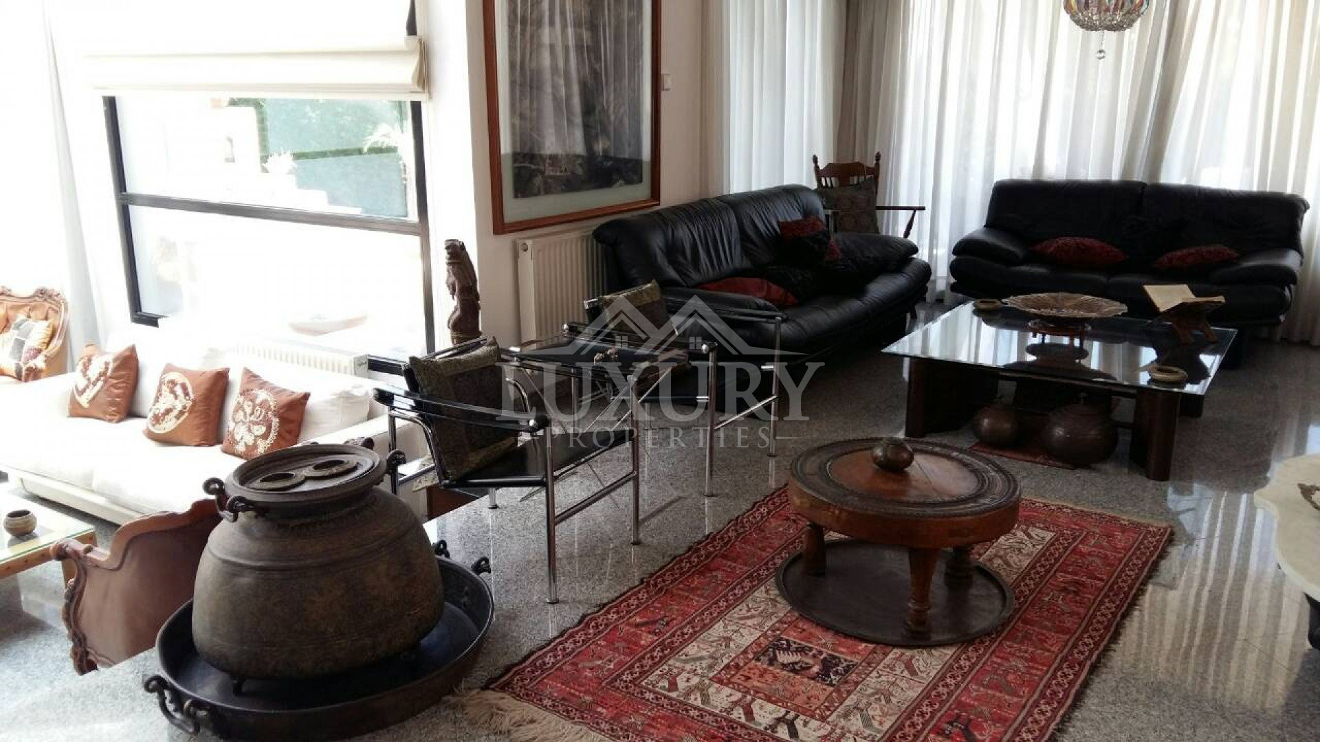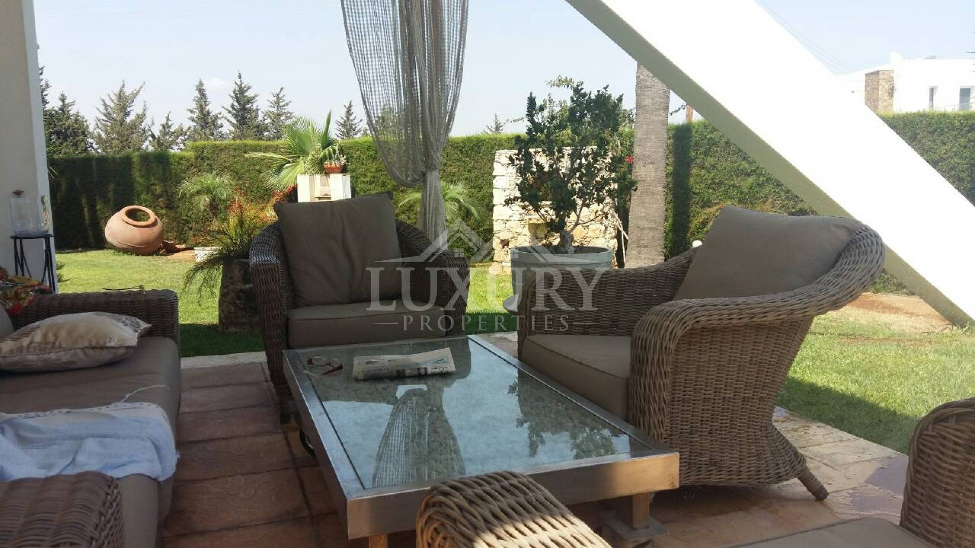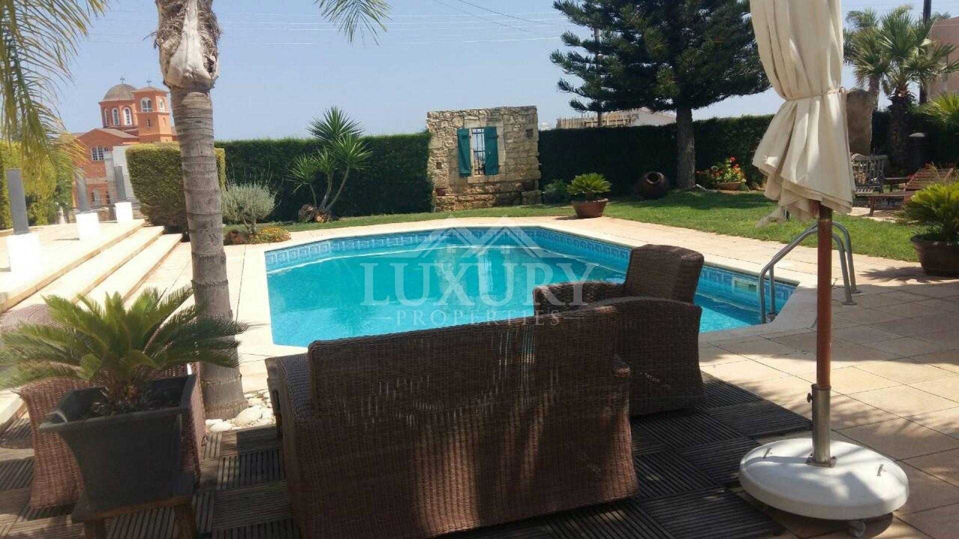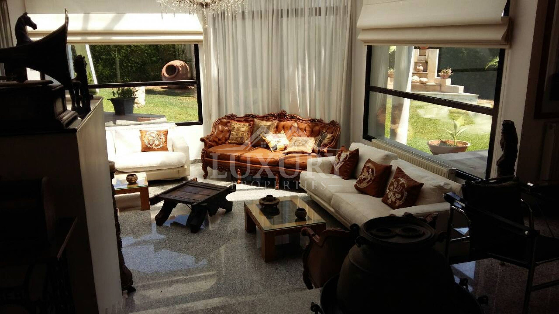 Lovely four bedroom villa in Ypsonas available for rent, built in two levels. It has internal covered area 480 square meters and the plot size 1800 square meters. In the ground floor there is an open plan kitchen with 3 living rooms,3 sitting rooms and 2 dining rooms, a bar and guest w/c. Also there two fire places and one utility room. On the first floor there are four bedrooms and one of them has en-suite bathroom, all of them with fitted wardrobes. There is also a family bathroom on the first floor. Outside of the building there is a nice big garden with trees and flowers, with automatic watering system and large parking space for four cars. Also there is a swimming pool and a changing room with shower and w/c.There is a maids-room separately from the house.The aluminium doors and windows are double glazed with security locks. It has storage room and solar water heater with pressure. Located in a quiet ,nice area surrounded by nice houses. Also it has private garage, security system and diesel central heating . It has easy access to the motorway.