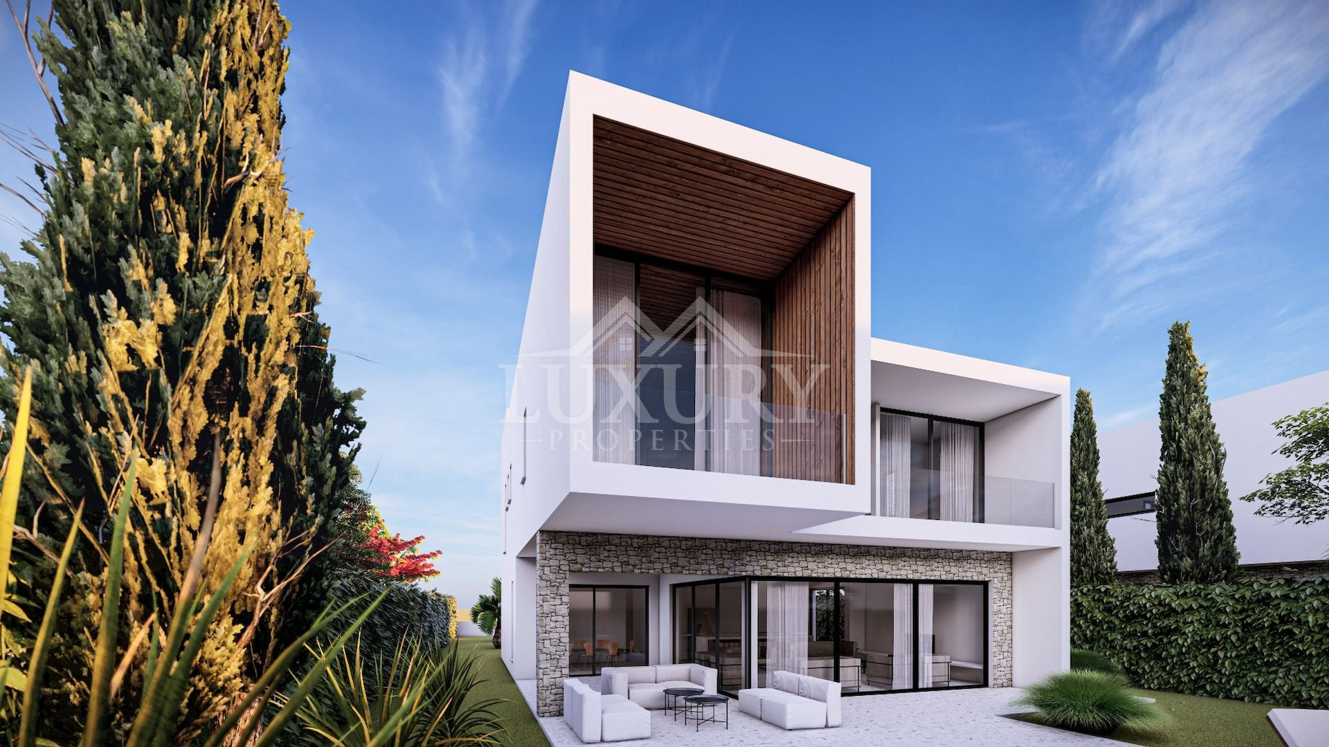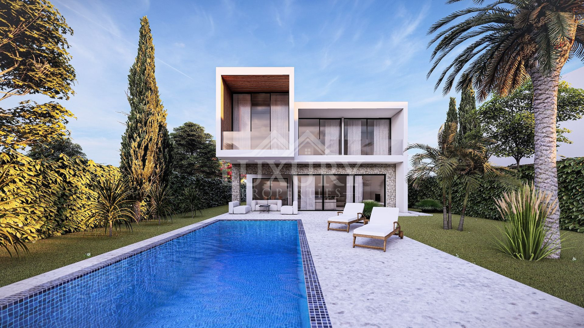 This is a luxurious villa within an exclusive three-villa development, each a true gem offering breath-taking panoramic views of the city, sea, and stunning sunsets.