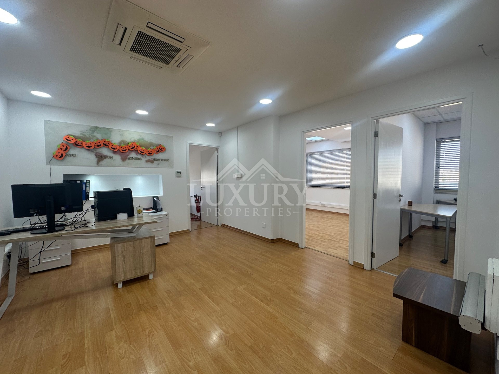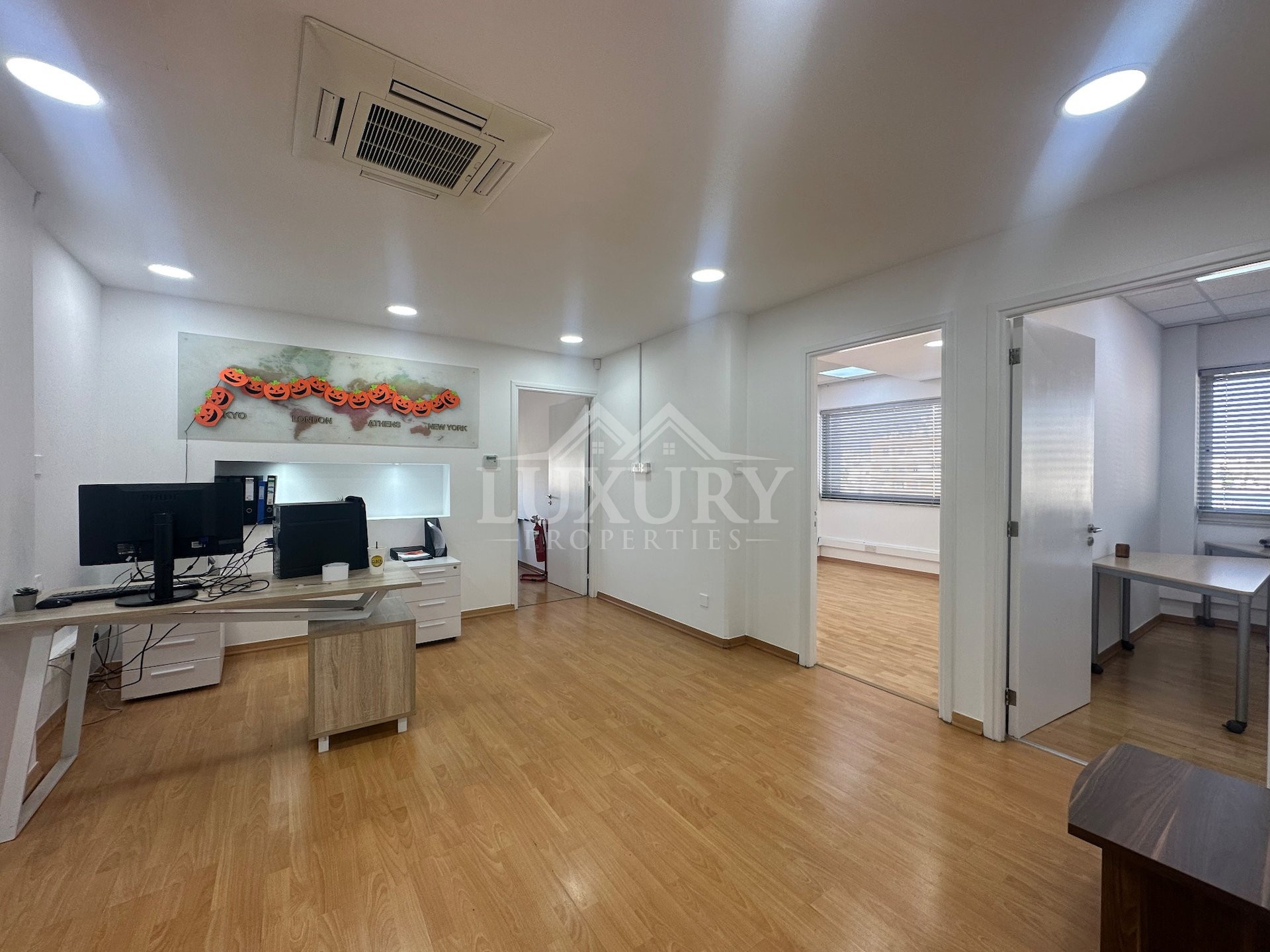 Lovely partitioned renovated offices in the sought after location of Agios Nicholaos within walking distance to all amenities and easy access to all arteries of Limassol.The offices have been recently renovated and fully equipped with 2 designated covered parking, uncovered parking, server room, CC T.V, structured cabling, alarm system.