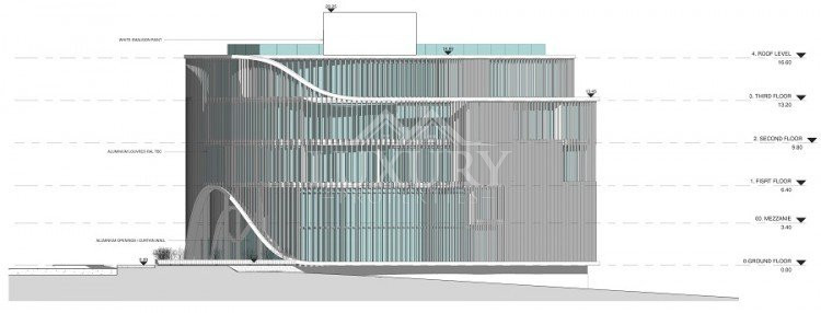 The basements are hosting the parking areas with capacity approx. 120 parking spots. All floor levels at the moment are designed with open plan arrangement so they are idea to be used for office purposes, educational, healthcare and retail while there is a possibility for a roof terrace.T