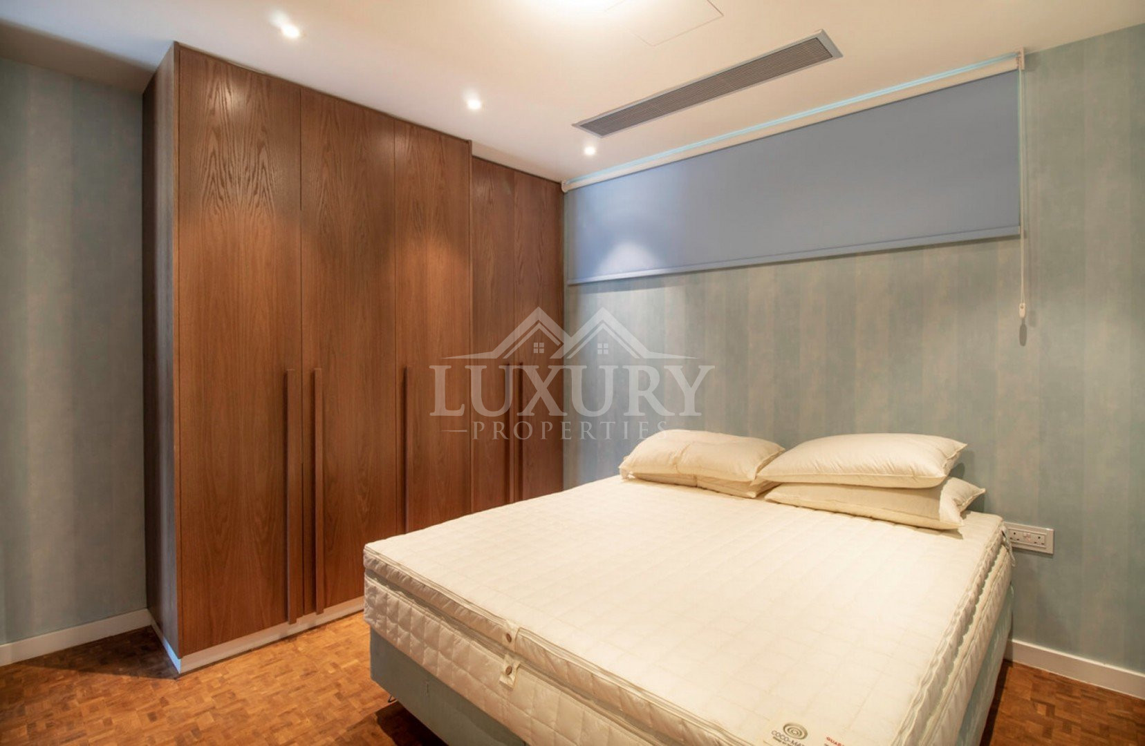 Every bedroom and the utility area enjoy direct access to the outdoor spaces, where the villa’s spectacular curved infinity-edge swimming pool awaits. This level also features a fully equipped BBQ and entertainment area, shade sails for cooling comfort, and an outdoor shower. The extensive landscaping—comprising mature trees, vibrant shrubs, and colourful flowering plants—enhances the villa’s exclusivity and charm.